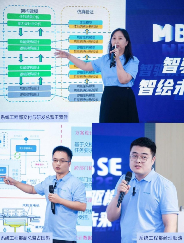 安托系统工程团队随后分享了航天、核电、商用车三大行业的实战案例,王双佳展示了MBSE在航天型号项目中的落地成效,显著节约试验成本;占国熊介绍了核电领域通过五大核心能力构建,实现从需求到优化的全链路贯通与无损传递;耿涛则围绕商用车MBSE从0到1的突破,提出以模型为核心的整车系统设计方法,形成敏捷开发新范式。