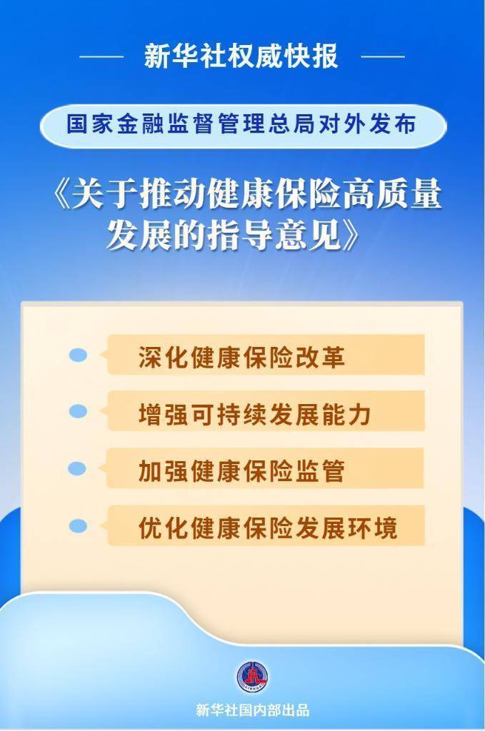 国家金融监督管理总局9月30日对外发布《关于推动健康保险高质量发展的指导意见》,明确了健康保险未来一段时间发展的总体思路和阶段性目标。